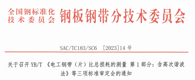 根据工业和信息化部工信厅科函〔2020〕263号文要求,由宝钢股份有限公司等单位负责制定的YB/T 《电工钢带(片)比总损耗的测量 第1部分:含高次谐波法》(项目编号2020-1474T-YB)、YB/T 《电工钢带(片)比总损耗的测量 第2部分:直流偏磁状态法》(项目编号2020-1475T-YB)、YB/T 《电工钢带(片)交流磁致伸缩特性的测量方法》(项目编号2020-1476T-YB)三项标准已完成送审稿的编制工作。