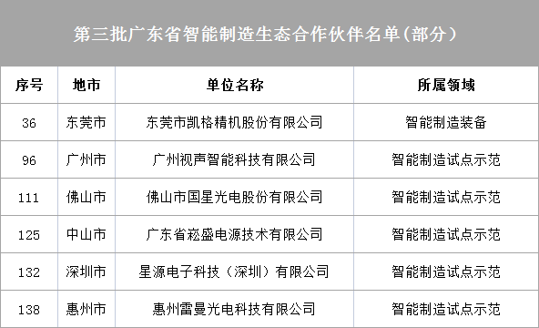 近日,广东省工业和信息化厅公布了第三批广东省智能制造生态合作伙伴名单。经企业申报、地市推荐、专家评审和公示,139家单位被纳入第三批广东省智能制造生态合作伙伴。