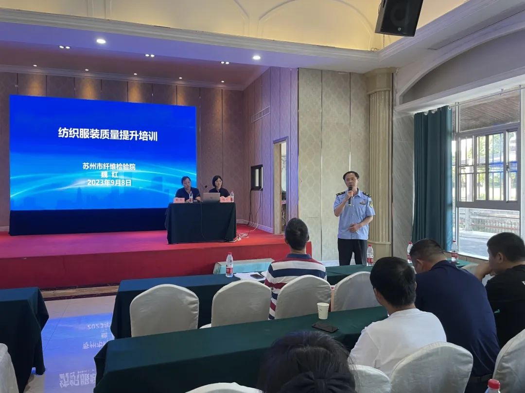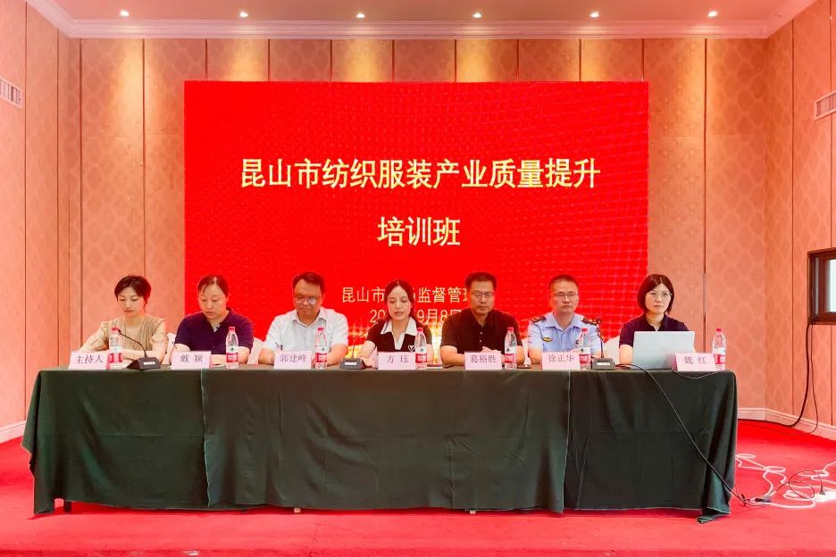 昆山市市场监管局组织召开纺织服装产业质量提升培训班。昆山市市场监管局副局长方珏、巴城镇党委委员葛裕胜、苏州市纤维检验院副院长郭建峰出席会议,各分局领导、质量专家及生产、销售单位质量负责人参加。