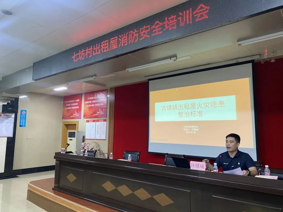 为深刻汲取近期古镇火灾事故教训,加强灯饰配套行业的消防安全整治工作,进一步增强消防安全意识和突发火灾事件应急处置能力,加大消防安全知识的宣传力度,9月7日下午,我村组织召开七坊村灯饰行业消防安全培训会、七坊村出租屋消防安全培训会以及七坊村火灾高风险区域整治推进会,七坊村党委书记何英伟、党委委员区健成、辖区内灯饰配套加工制造行业单位负责人、出租屋主以及我村安全生产巡查工作人员共80人参加培训。