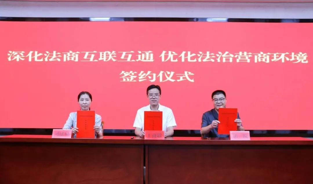 会上,县法院、县工商联、县司法局共同签订了《关于深化法商互联互通优化法治营商环境合作协议书》,协议约定,三家单位要引导和帮助民营企业家自觉尊法学法守法用法,通过商会商事调解工作的桥梁,引导企业诚信经营、规范管理、健康发展,深化法商互联互通,共同优化法治化营商环境。
