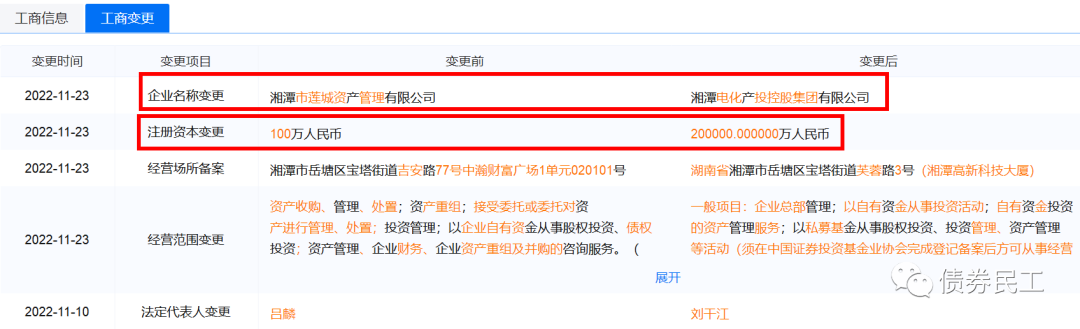 产投集团应该是指湘潭产业投资发展集团有限公司控股股东是湘潭市国资委。电化集团应该是指湘潭电化集团有限公司,控股股东是湘潭振湘国有资产经营投资有限公司。根据公开信息,湘潭电化产投控股集团有限公司原名为湘潭市莲城资产管理有限公司,在2022年11月进行了法定代表人、经营范围、经常场所、注册资本和企业名称变更。