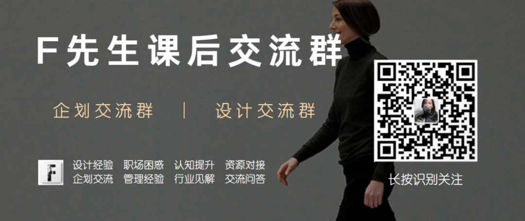 Take heart without taking detours “走心,不走弯路” ▲ 关注F先生视频号 《F先生精品课》直播间(千聊平台统称直播间,其实课程均为永久录播),至今总学习次数已经超过80000次,学习过的学员已超过7500人。长按识别下方二维码。升级认知、提升能力、增强自己的核心竞争力。我,与你同在。 ▲ 深度学习企划、设计、管理课程