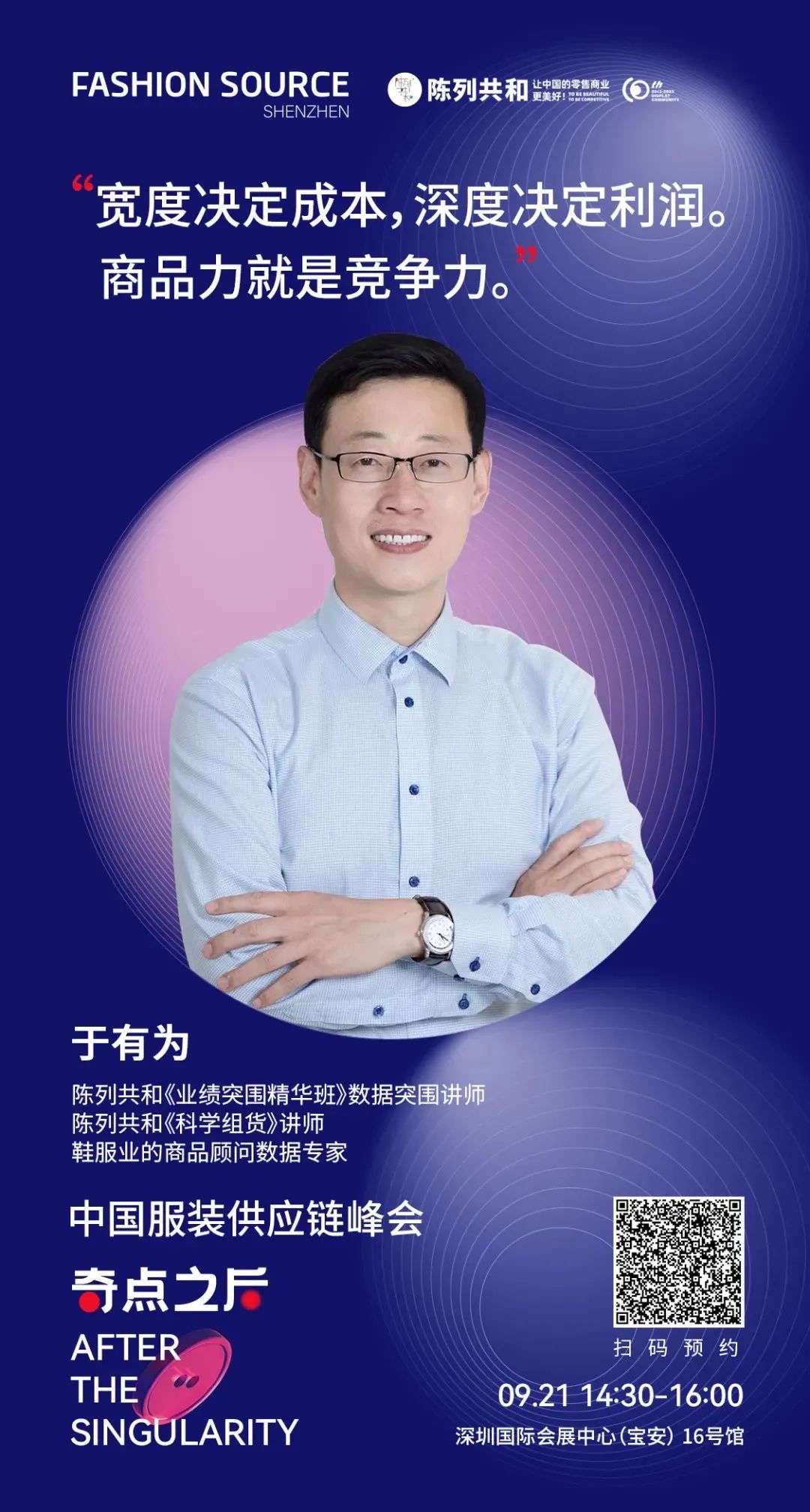 讲师介绍:于有为,20年专注聚焦鞋服行业商品专业,“798”商品快进快销模式创始人,百胜ERP系统研究院商业数据顾问,著作首本订货工具书《订货专家》。