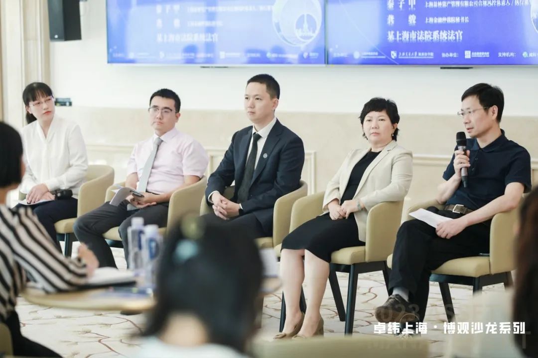 第二轮圆桌讨论环节由上海金融仲裁院副秘书长刘雯主持。上海金融法院综合审判三庭庭长王鑫、国泰君安证券股份有限公司证券信用业务委员会副总经理杨蕾、上海景林资产管理有限公司合规风控负责人、执行董事秦子甲、上海金融仲裁院秘书长龚骏就“探寻与反思违反适当性义务的法律责任”话题展开,从司法实务、投资者、管理人、代销机构等角度分享了各自在实践和研究中的经验。