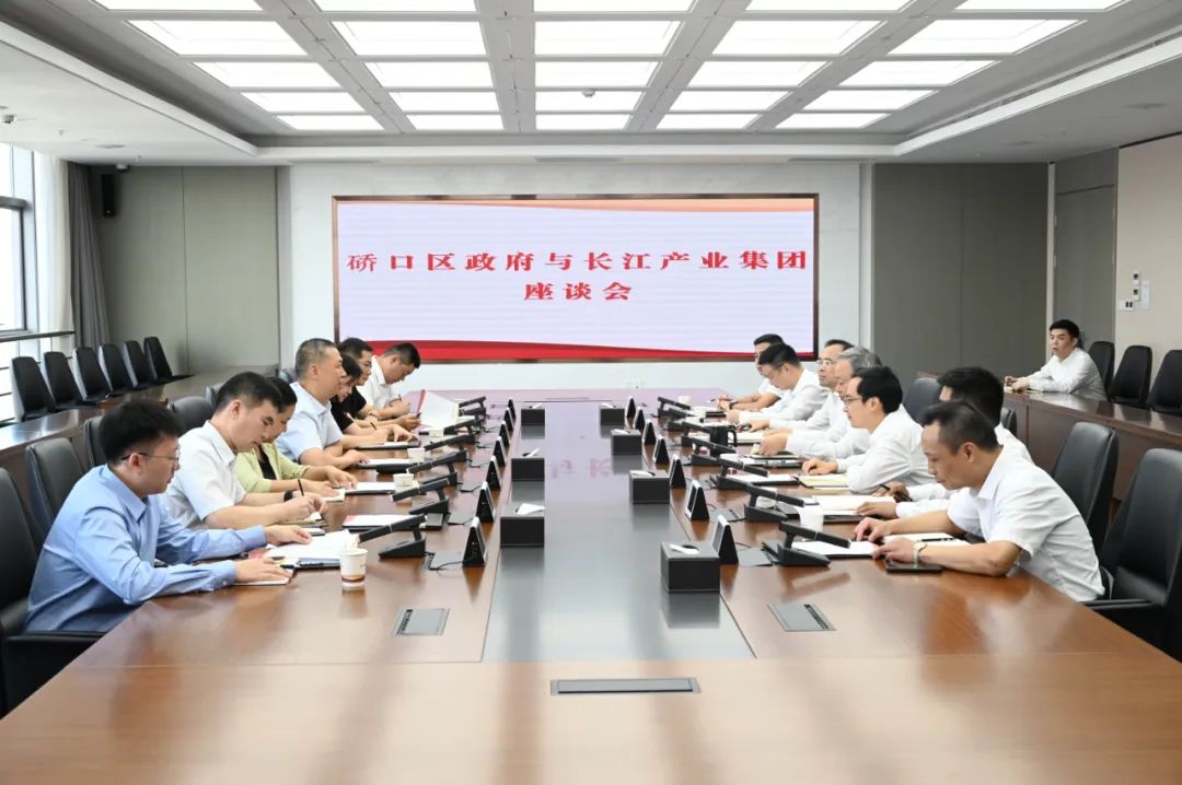 苏海峰详细介绍了硚口区发展历程和经济产业建设情况。他表示,硚口区地处武汉中心城区,传统商贸聚集区,正在依托区位、资源优势重点发展现代商贸、大健康和科技服务三大产业。硚口区政府高度重视与长江产业集团的合作,希望在前期基础上进一步深化交流合作,共同推进硚口区转型发展,实现互利共赢。