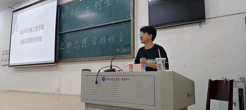 为确保2023级新生迎新工作顺利进行,9月8日中午,机械工程学院于9T1教室顺利举办了2023年机械工程学院迎新志愿者培训会议。此次会议由2023级本科新生助理辅导员闫奕锦和青年志愿服务中心主席黄思裕主讲,青志常规事务部部长廖丹主持。
