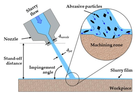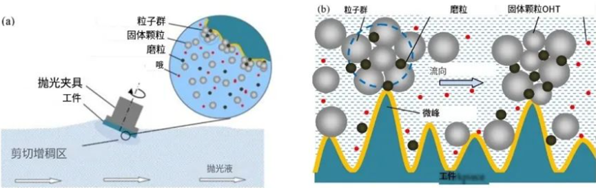 当施加到浆料上的剪切应变率超过临界值时,STP浆料的流变特性会发生变化,浆料粘度急剧上升后转变为可适应各种曲面抛光的柔性磨具。简单描述即使磨料颗粒与流体(气体或液体)混合,形成磨料射流冲击工件表面,一般用于光学应用的石英玻璃抛光,可使用胶体二氧化硅和胶体氧化铈作为磨粒。