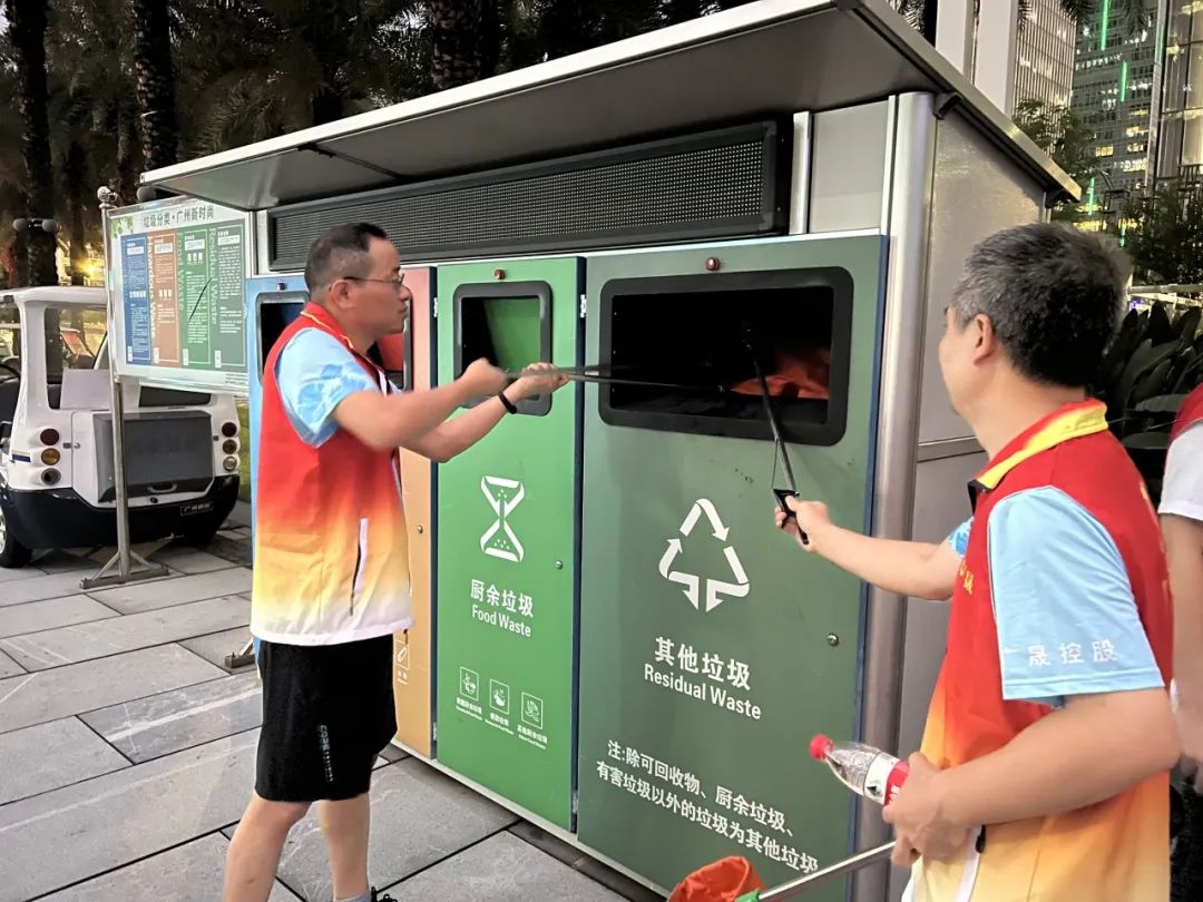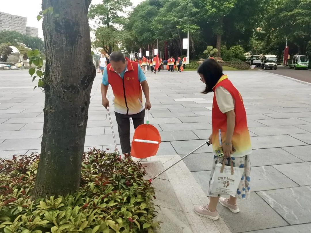 “充电蓄能”后,志愿者们身穿“红马甲”,手持环保夹、垃圾袋,从广晟国际大厦出发、以花城广场北区垃圾分类站为终点,沿着花城广场开展环圈“捡跑”。活动中,他们眼观六路,一边慢跑一边将沿途路面、草坪、花坛的饮料瓶、烟头、废弃纸巾等垃圾“收入囊中”,为环境做“捡”法。抵达活动终点后,志愿者们便利用垃圾分类讲座中学到的知识,准确投放捡拾到的各种垃圾,顺利完成“捡跑”任务。