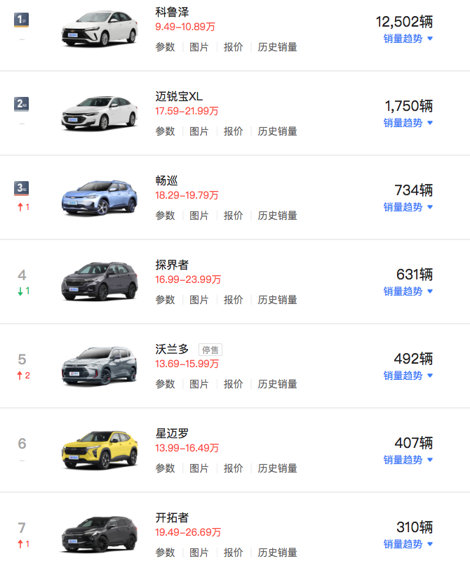 据了解,雪佛兰是通用汽车集团下最大的品牌,创立于1911年11月3日,于2005年1月18日由上汽通用引入国内,成为上汽通用汽车旗下第三大品牌。官网显示,目前雪佛兰旗下在售车型包括迈锐宝XL、科鲁泽、科沃兹、沃兰多、创酷RS、创界、开拓者、探界者、星迈罗等车型。