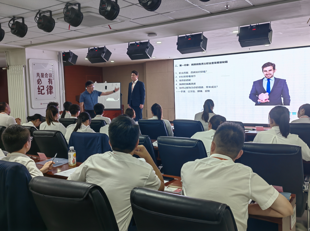 本次培训围绕营销人员日常社交礼仪展开,主要包含礼仪概述、职业形象、社交礼仪、商务礼仪、职业素养提升等内容。在培训进行中,王凯老师更是结合营销工作实际,对大家广泛关注和关心的商务交往规范、商务沟通礼仪、商务着装、体态仪容仪表、客户谈判技巧等内容板块进行了深入讲解和现场演示。