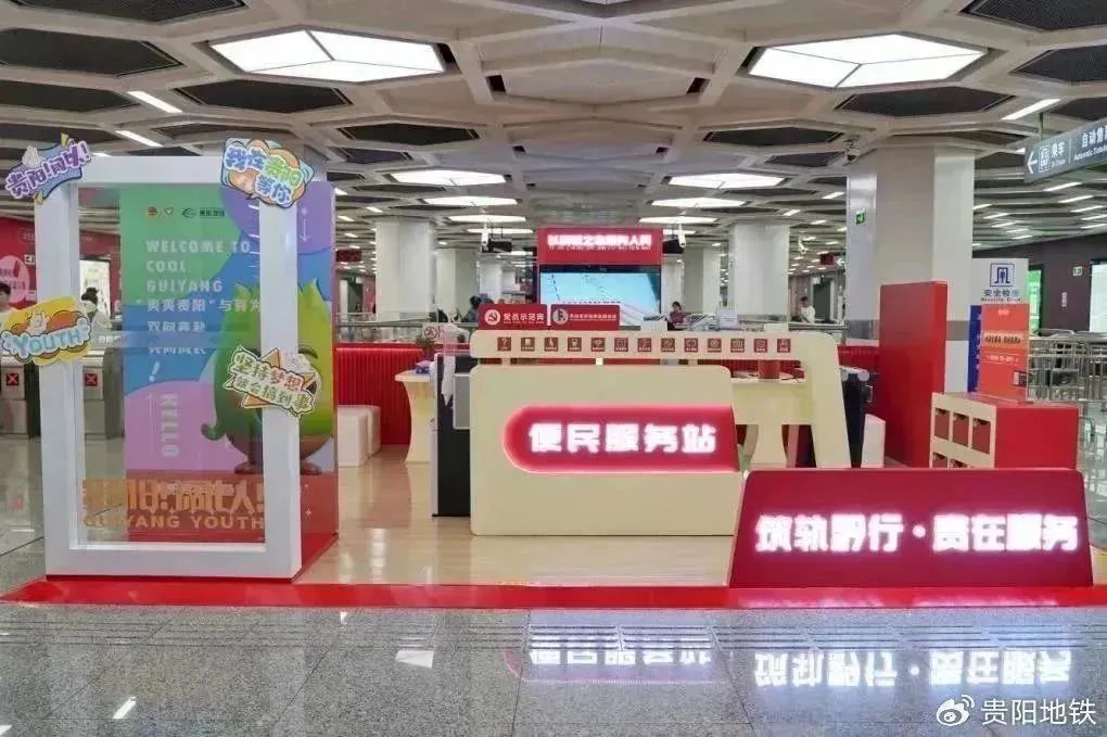 建立党建便民服务站,提供“全时段服务体验”。8月8日,贵阳地铁2号线喷水池站“筑轨黔行·贵在服务”党建便民服务站正式投入使用,内设立休憩区、阅读区等多个功能区域,设有党员示范岗、雷锋志愿服务岗等咨询平台,提供饮水机、雨伞雨具、应急药箱、书籍报刊、“爽爽贵阳”打卡点等多元便民服务,提供“全时段服务体验”,在地铁运营所有时段均开放党建便民服务站,让群众可自由进入、自主使用,实现“有限空间、无界服务”,着力打造市民乘客出行路上的舒适驿站、温暖港湾。