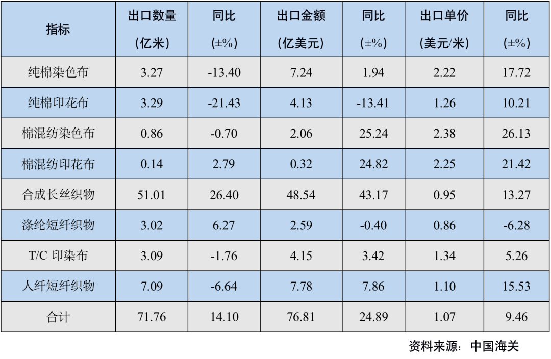根据中国海关统计数据,2022年一季度,印染八大类产品出口数量71.76亿米,同比增长14.10%,增速较1~2月提高7.23个百分点;出口金额76.81亿美元,同比增长24.89%,增速较1~2月提高5.63个百分点;出口平均单价1.07美元/米,同比提高9.46%,出口单价的增长对企业利润增长的带动作用明显。东南亚地区纺织产业链供应链逐步恢复,一些国家对我国面料需求增加。同时,随着欧美等服装服饰主要消费地区逐步取消疫情防控措施,终端消费需求持续回暖,我国印染产品间接出口保持增长态势。1~3月,我国累计完成服装及衣着附件出口356.85亿美元,同比增长7.4%,其中3月服装出口102.2亿美元,同比增长10.9%;累计出口家用纺织品106.77亿美元,同比增长10.09%,出口单价同比增长7.78%。