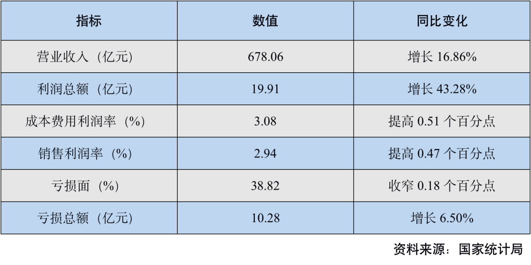 根据国家统计局数据,2022年一季度,规模以上印染企业营业收入678.06亿元,同比增长16.86%,较1~2月回落2.03个百分点;实现利润总额19.91亿元,同比增长43.28%,较1~2月回落8.20个百分点;成本费用利润率3.08%,同比提高0.51个百分点;销售利润率2.94%,同比提高0.47个百分点;完成出口交货值94.50亿元,同比增长14.99%。1677家规模以上印染企业亏损户数为651户,亏损面38.82%,同比小幅收窄0.18个百分点;亏损企业亏损总额10.28亿元,同比增长6.50%。一季度,印染企业订单量总体稳定,开工情况基本良好,在东南亚国家对我国印染面料需求明显增加的背景下,企业主要经济指标实现较高幅度的增长,但同时也面临着增速趋缓的压力。