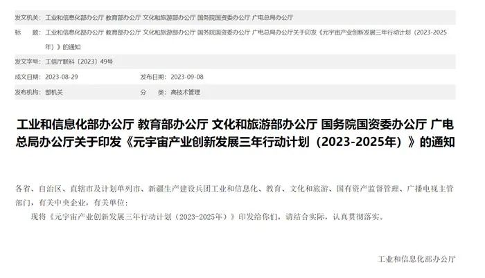更多信息请访问《元宇宙产业创新发展三年行动计划(2023-2025年)》,以及工信部自己对文件的官方解读。