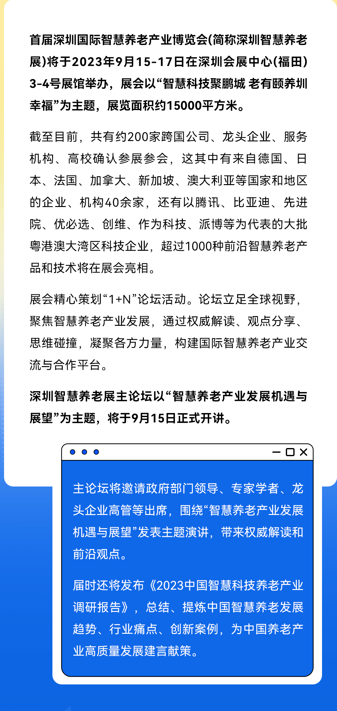 首届深圳国际智慧养老产业博览会主论坛阵容公布