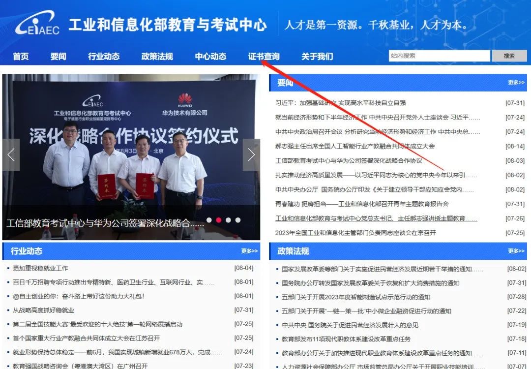 3.打开工业和信息化部教育与考试中心网站的证书查询