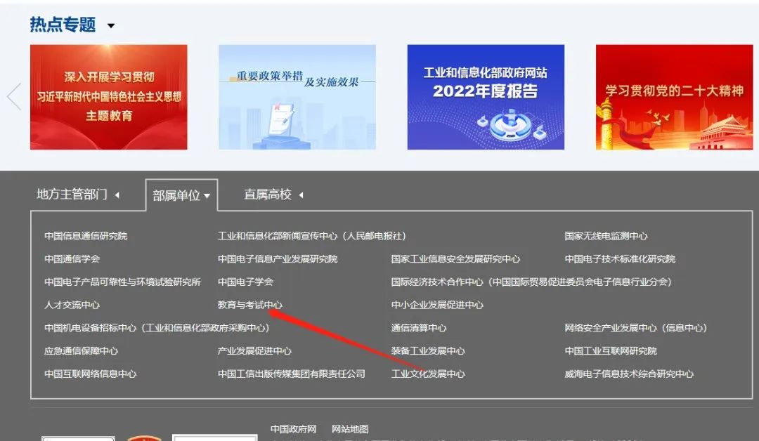 2.网站往下拉 找到部属单位 工业教育部与考试中心