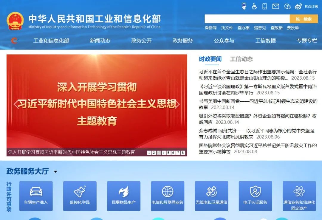 1.浏览器打开中华人民共和国工业和信息化部官方网站