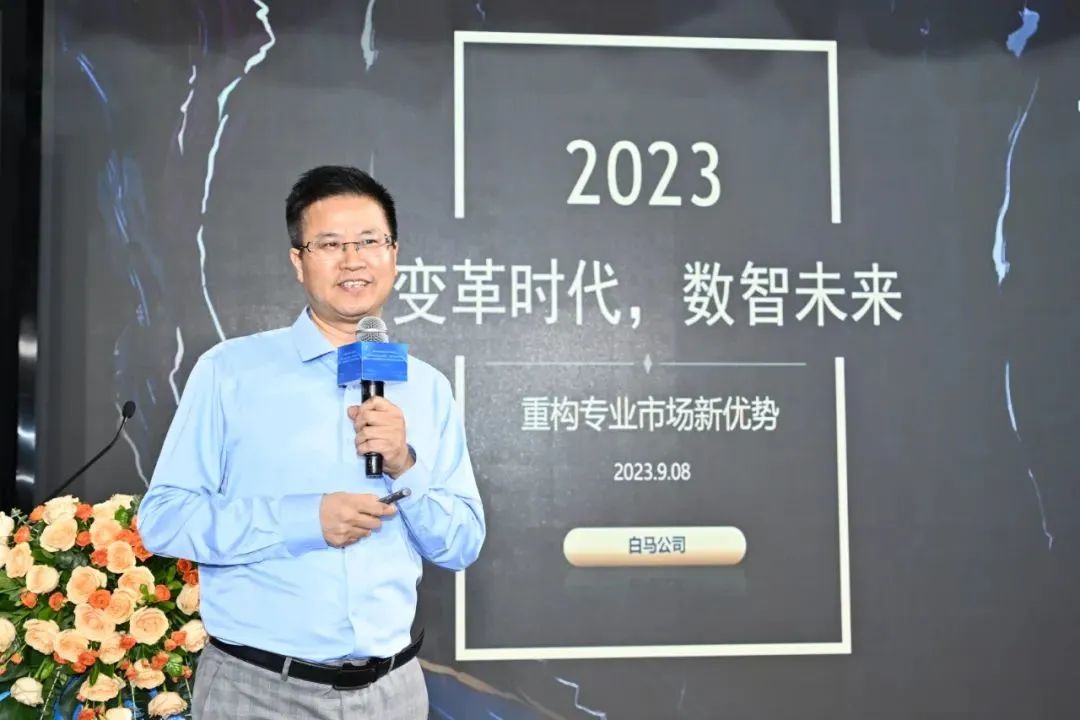 广州白马商业经营管理有限公司党支部书记、副总经理黄秋权以《变革时代,数智未来——重构专业市场新优势》为主题,结合白马数智化转型和创新实践进行了分享。他表示,专业市场、品牌、采购商通过数智赋能,不仅可以及时准确的掌握采购、交易等数据,还能提升效率、降低成本,实现数智协同。