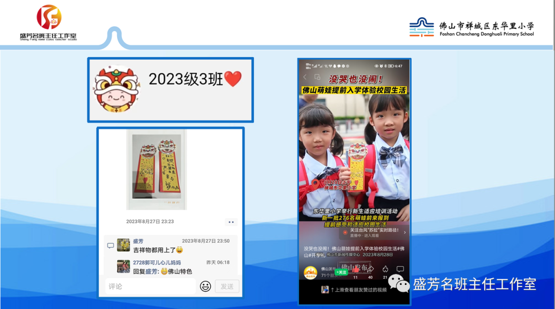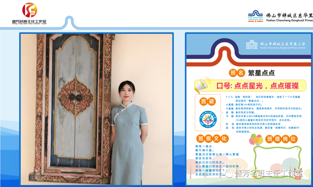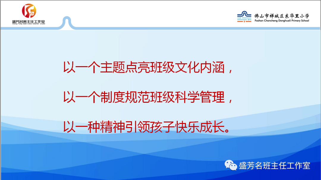 为了进一步发挥班级文化以文化人,以文育人作用,促进班主任专业成长,提升班主任班级文化建设的实施能力,2023年8月30日早上,佛山市名班主任工作室主持人黄盛芳老师,在东华里小学分享了班级文化建设的经验。