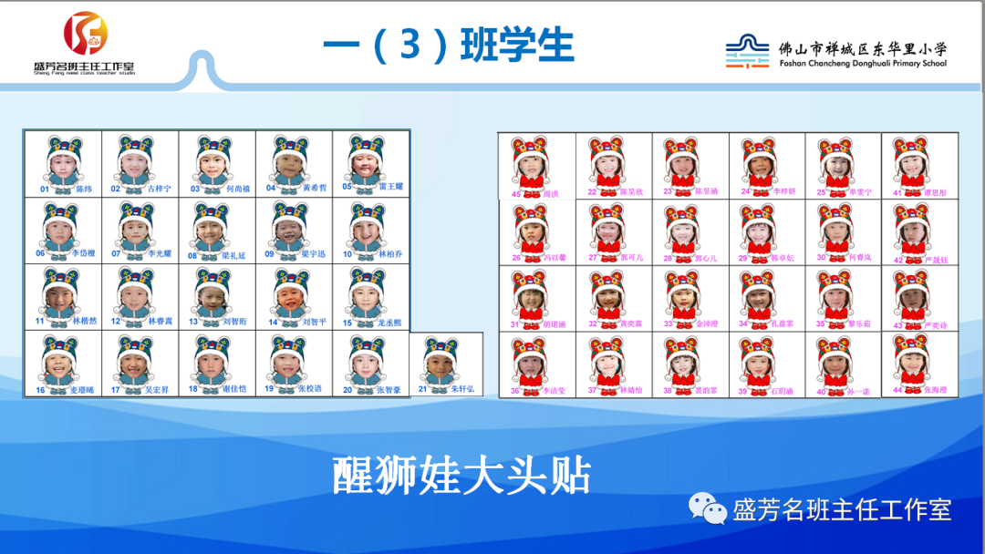黄老师还介绍了刚刚新接一年级3班,班级为何采用醒狮元素,并把醒狮定为吉祥物的原因,还为每位学生设计了可爱醒狮娃大头贴等,让我们充分感受到黄老师的用心与智慧。