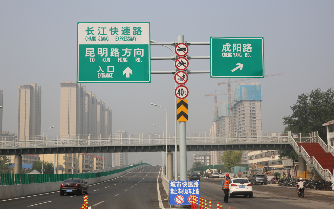 2023年9月4日,菏泽市长江路快速通道工程(点将台路至人民路段)高架快速路开始试运行。