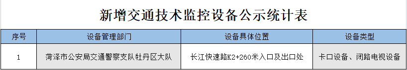 交通技术监控设备的公示