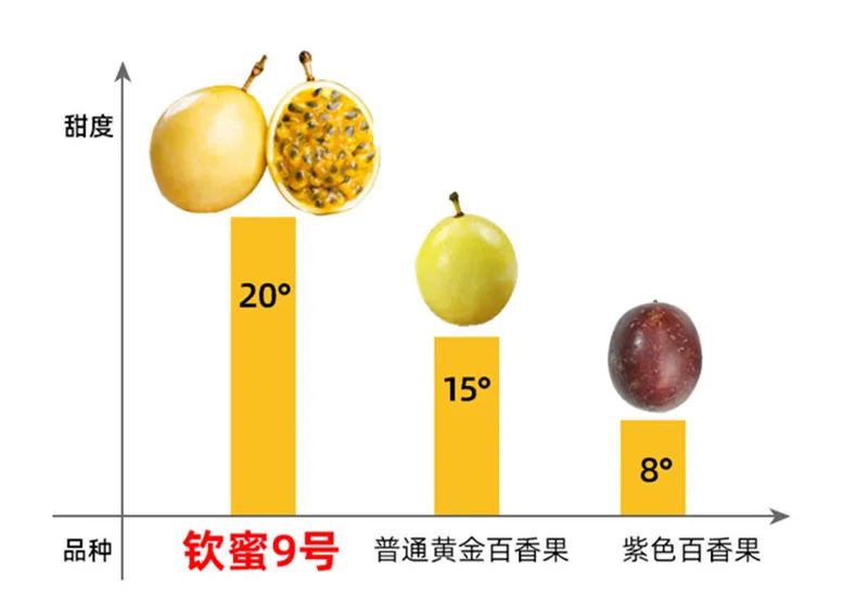 而今天我们带来的钦蜜9号黄金蜂蜜百香果!更是黄金百香果中的天花板。它不仅个头比普通百香果大,甜度还高达20度。