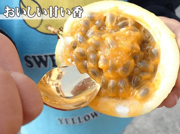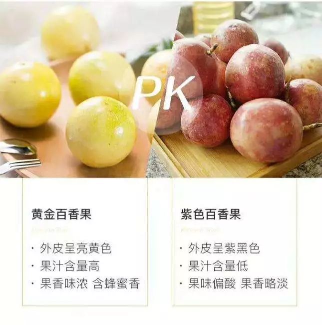 普通的紫皮百香果,闻着味着不多,但因太酸,根本没法直接吃。大部分都用于饮料与药用。而“黄金百香果”香味更加浓郁,甜度比紫色百香果高很多,也更营养美味,可直接食用,吃起来唇齿留香,酸甜可口。