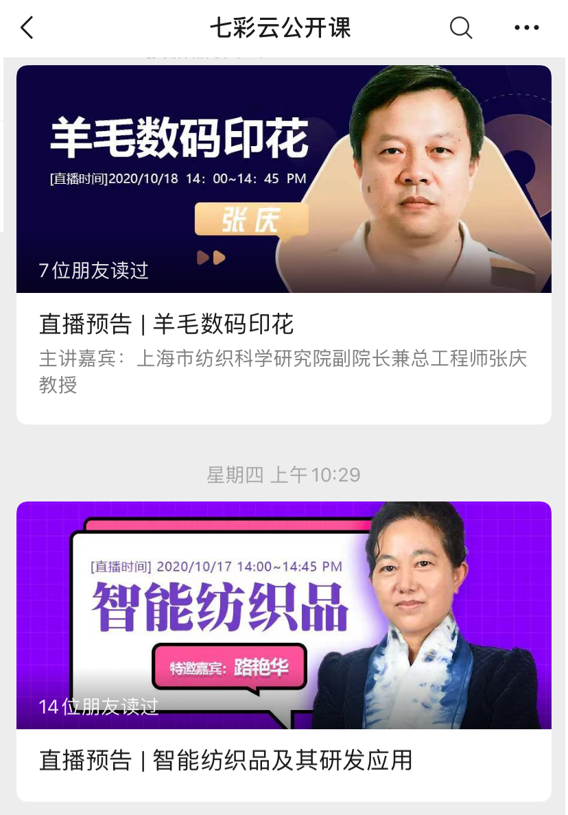 为期7天的2020七彩云第一届国际纺织面料线上展览会已经华丽开幕,从2020年10月17日至10月23日在七彩云电商平台举办。七彩云纺织面料线上展览会期间,不仅有100家参展的优秀纺织印染企业交流合作、发掘商机、展示风采。还将举办多场丰富多彩的行业专家在线直播讲座。