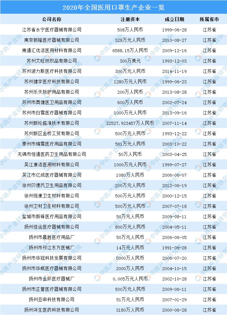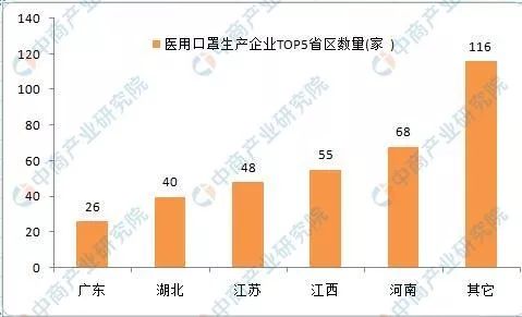 摘要:【医用口罩企业情报:2020中国医用口罩生产企业盘点(附名单)】据工信部数据显示:在口罩生产供应方面,我国口罩最大产能是每天2000多万只。来自中商产业研究整理的数据显示:目前医用口罩许可证共有559张,分布在全国25个省市353家企业。按企业数量分布来看,医用口罩企业主要集中河南、江西、苏、湖北、广东等省。(中商产业研究院)