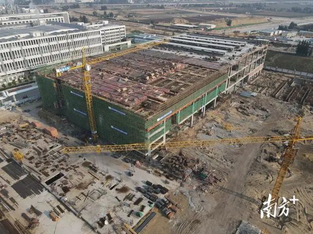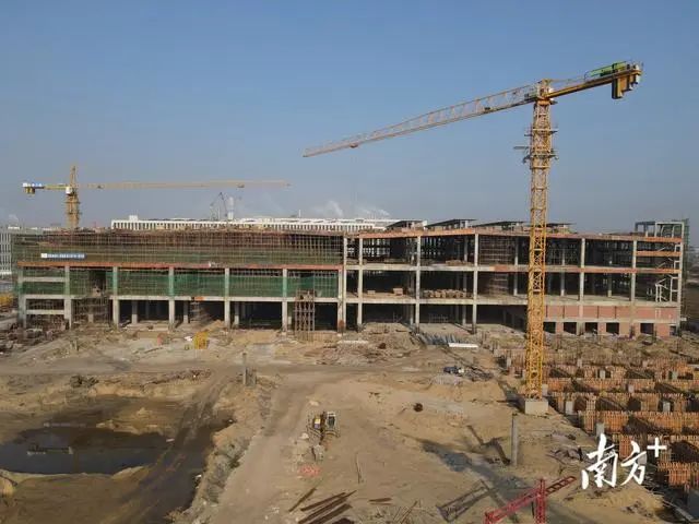 近日,在汕头市重点项目广东荣昌绿色智能纺织印染项目施工现场,一期工程的主体楼已经封顶,外墙砌体也已完成,走进内部发现,地下负六米设备生产污水的处理中心已经建成,工人们正在安装室内消防水电以及设备基座。