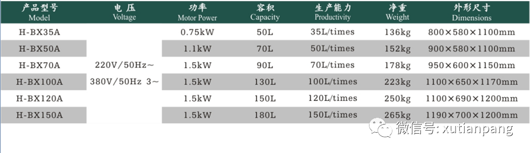 35/50/70/100/120/150L容积选择,动力强劲,轻松拌料