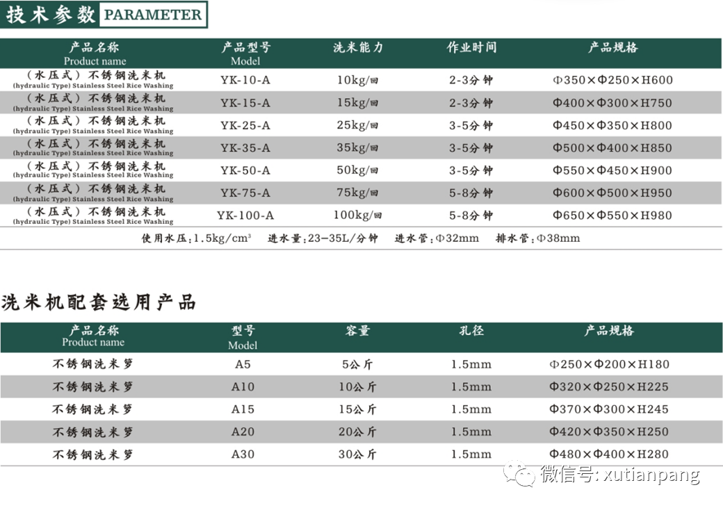 YK系列(水压式)不锈钢洗米机采用自来水作为洗米动力,自来水通过本产品的主体水阀进行加压,将大米送入U形洗米管内腔进行冲洗,以其达到洗刷大米的效果。本产品结构合理,在洗米过程中能将大米的上浮物质通过洗米机溢水面进行排放,此产品的特有性能并不影响洗米效果和浪费大米,经过清洗的大米能保证干净卫生,本产品符合食品加工卫生标准。