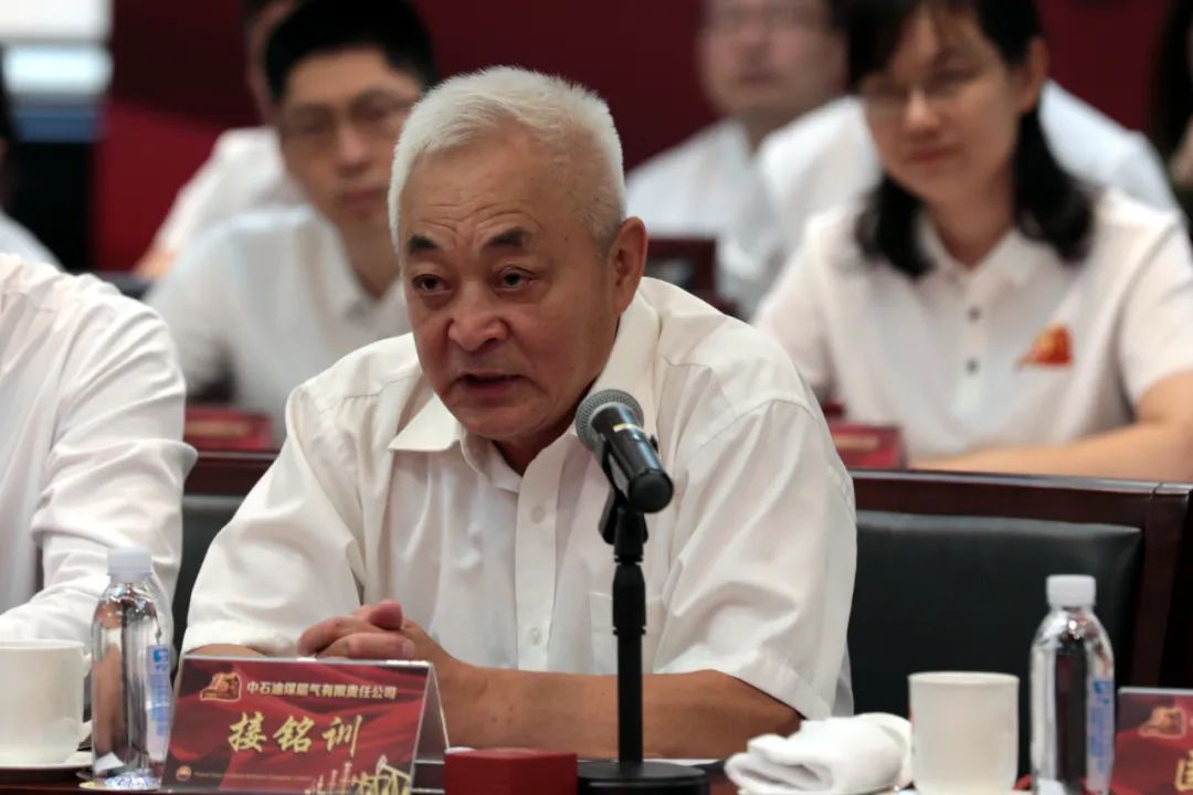 公司原执行董事、总经理、党委书记接铭训同志深情回忆了公司起初成立时的艰辛与不易,真切地感受公司如今蓬勃发展的潜力与活力,真诚祝愿煤层气公司勇攀高峰、取得更加辉煌的成绩。