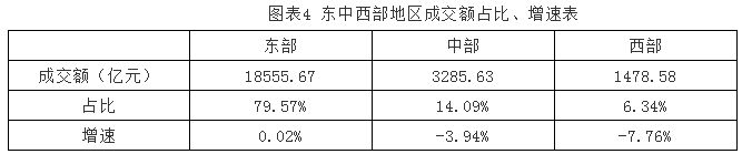 图表4东中西部地区成交额占比、增速表
