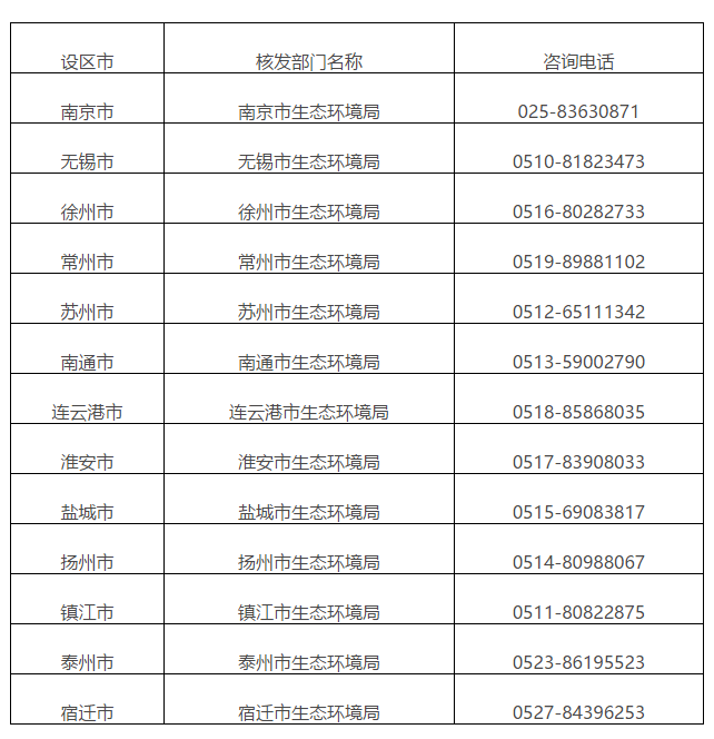 排污许可证核发部门及联系方式