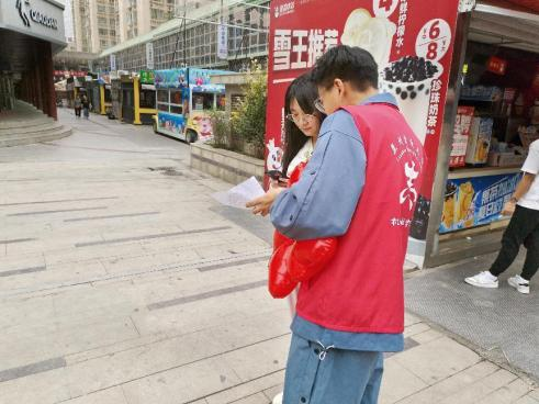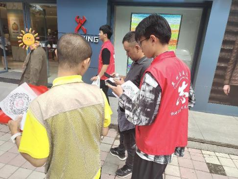 在基地老师的安排下,志愿者们和四位孩子一同前往周边开展活动。志愿者们和孩子们一起行动,手持小礼物和活动码,在游玩的同时也对路上的行人解释活动内容,将手中的小礼物给予支持者。他们手牵着手,笑声如歌,仿佛享受一个独属于他们的世界。志愿者们用心倾听孩子们的欢笑和呼唤,用温暖的陪伴化解他们内心的孤独和不安。