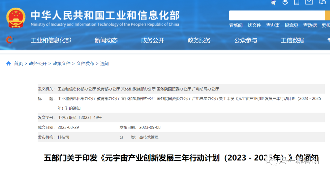 近日,工业和信息化部、教育部、文化和旅游部、国务院国资委、国家广播电视总局办公厅联合印发《元宇宙产业创新发展三年行动计划(2023-2025年)》(下文简称《行动计划》),为更好地理解和执行《行动计划》,现就相关内容进行解读: