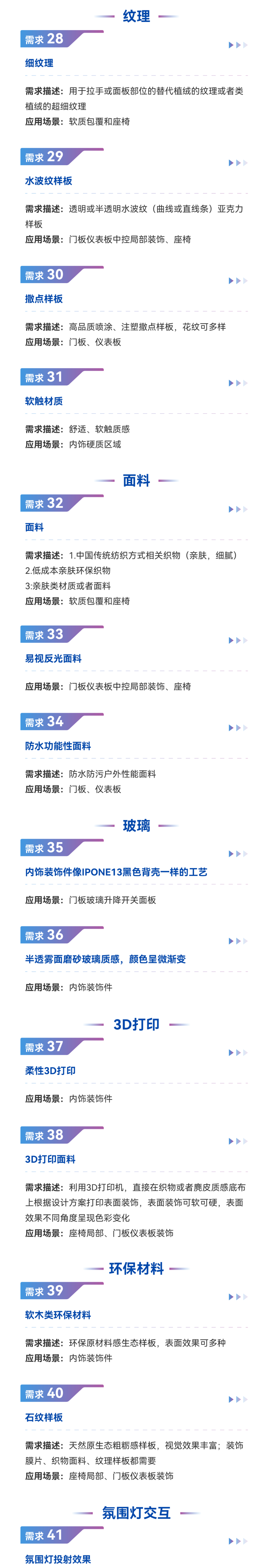 本月,寻材问料®走进终端接收到来自知名汽车企业提交的45+条创新材料/工艺需求,目前正在征集能够提供优质解决方案的供应商中。