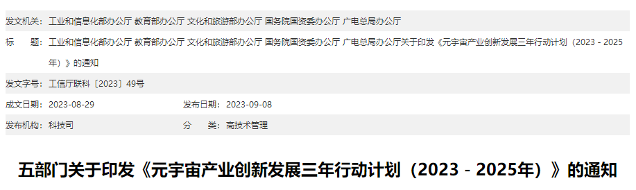 关于印发《元宇宙产业创新发展三年行动计划(2023-2025年)》的通知