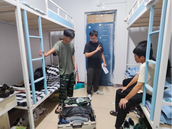 2023年9月8日,电子与电气工程学院辅导员王骞老师、牛金榜老师进入本专科新生宿舍,为同学们送去殷切关怀和深切慰问。