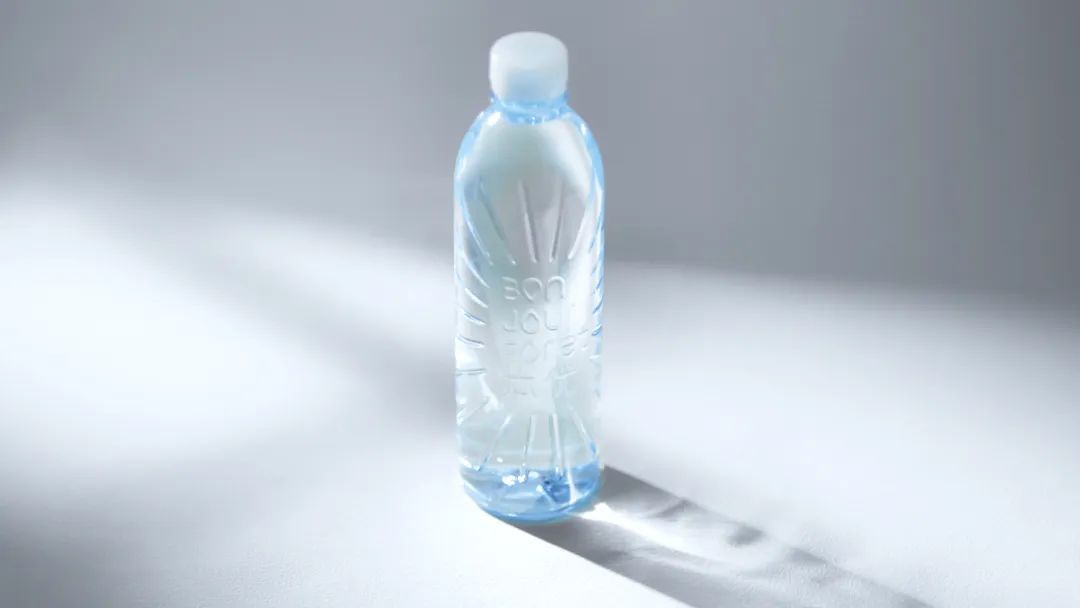 在最显眼的瓶身中央,本优突出了能让人联想到温暖自然、治愈系生活的阳光射线,并将品牌名与拟人化的“Bonjour(注:意为‘你好’的法语单词)”文字环绕其中,营造产品与消费者对话的亲切感。此外,象征纯洁的水滴元素也被融入问候语来诠释产品属性。