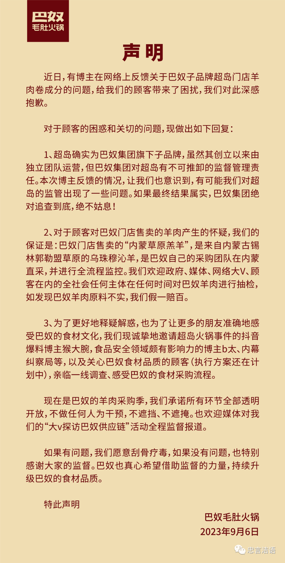 我们是有错就改有担当有责任,各路媒体跟进表扬巴奴值得信赖
