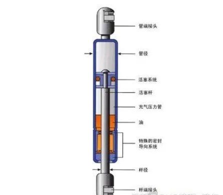 根据其特点及应用领域的不同,气弹簧又被称为支撑杆、调角器、气压棒、阻尼器等。目前,该产品在汽车、航空、医疗器械、家具、机械制造等领域都有着广泛地应用。它的变形与载荷荷关系特性线为曲线,可根据需要进行设计计。空气弹簧的结构形式很多,有囊式和膜式等,常用于车辆的悬架和机械设备的防振系统。气弹簧是一种可以起支撑、缓冲、制动、高度调节及角度调节等功能的工业配件。它由以下几部分构成:压力缸、活塞杆、活塞、密封导向套、填充物(惰性气体或者油气混合物),缸内控制元件与缸外控制元件(指可控气弹簧)和接头等。原理是在密闭的压力缸内充入惰性气体或者油气混合物,腔体内的压力是大气压的几倍或者几十倍。气弹簧作用时,利用活塞两侧存在的压力差,实现活塞杆的运动。由于原理上的根本不同,气弹簧比普通弹簧有着很显著的优点:速度相对缓慢、动态力变化不大(一般在1:1.2以内)、容易控制。