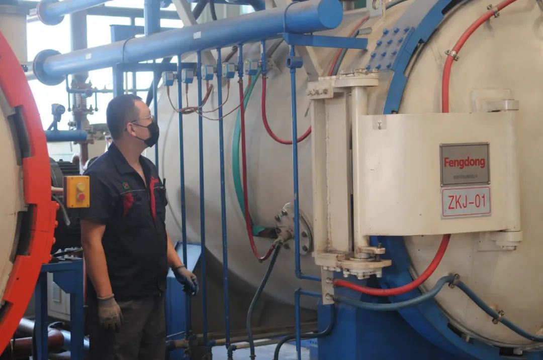 8月29日,淄博鲁蒙金属科技有限公司工人正在真空炉前工作。