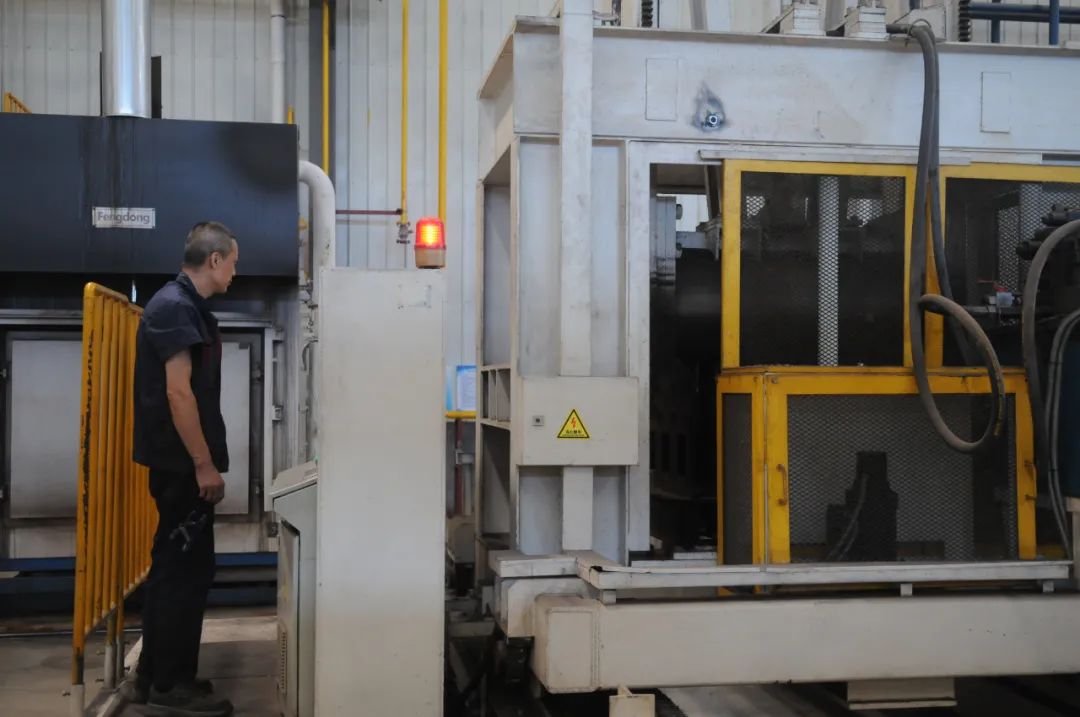 8月29日,山东淄博鲁蒙金属科技有限公司工人正在自动调质炉前工作。