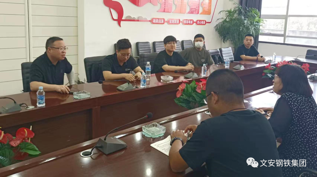 9月6日上午,北京冶金规划院杨越、武安市生态环境分局大气科科长焦广斌一行到文安钢铁进行走访调研,助理副总籍庆余、环保高级工程师杜慧聪、环保科长刘寅杰等热情接待。