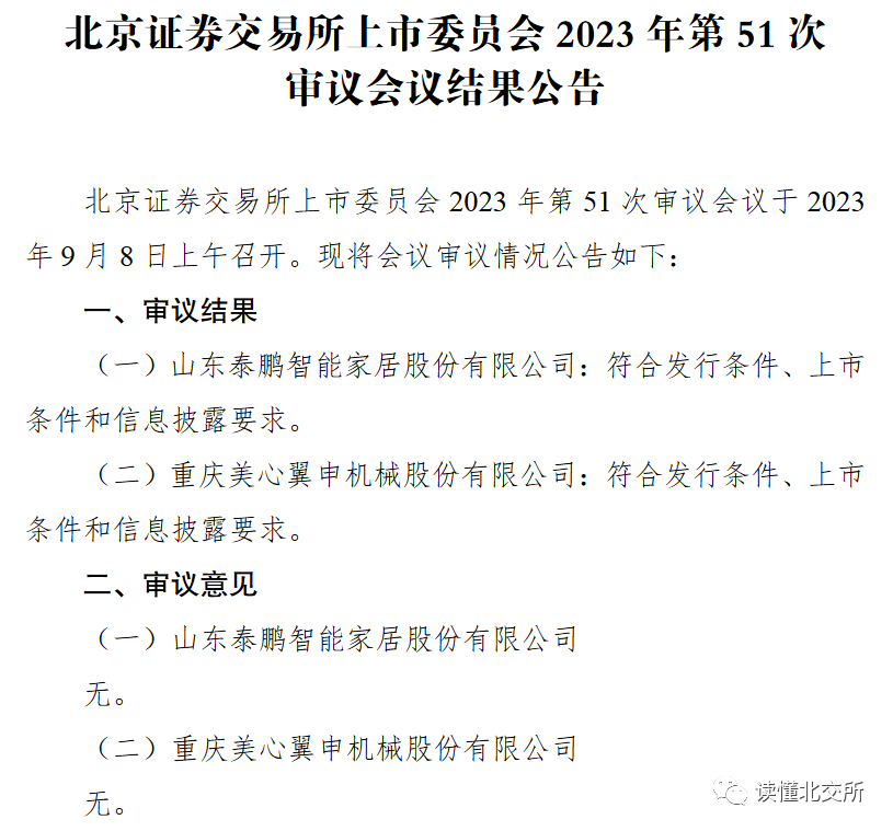北京证券交易所上市委员会2023年第51次审议会议于2023年9月8日上午召开。